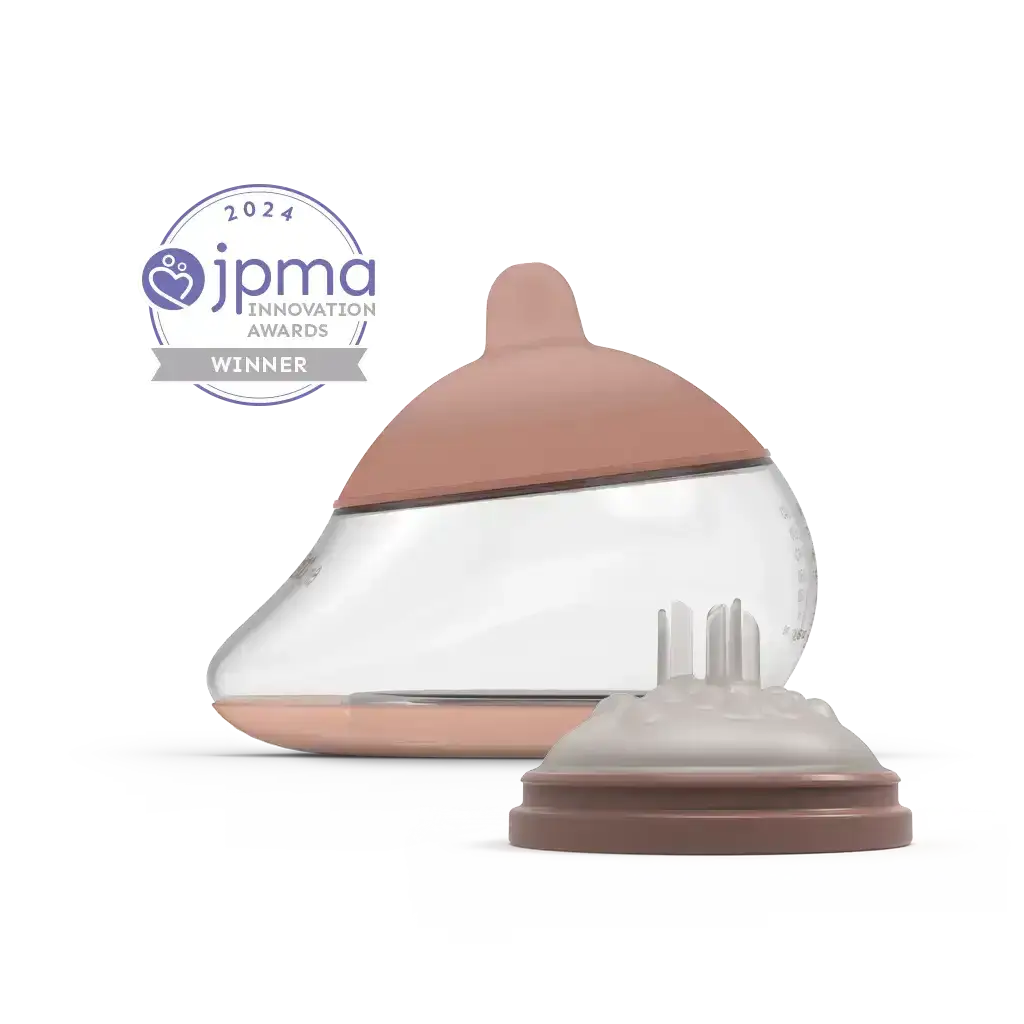 Our pacifier has been designed to emulate the familiar softness and texture of a nipple, but with a universal shape and a slightly thicker silicone to limit the stretchability so babies can differentiate between time to soothe vs. time to feed.