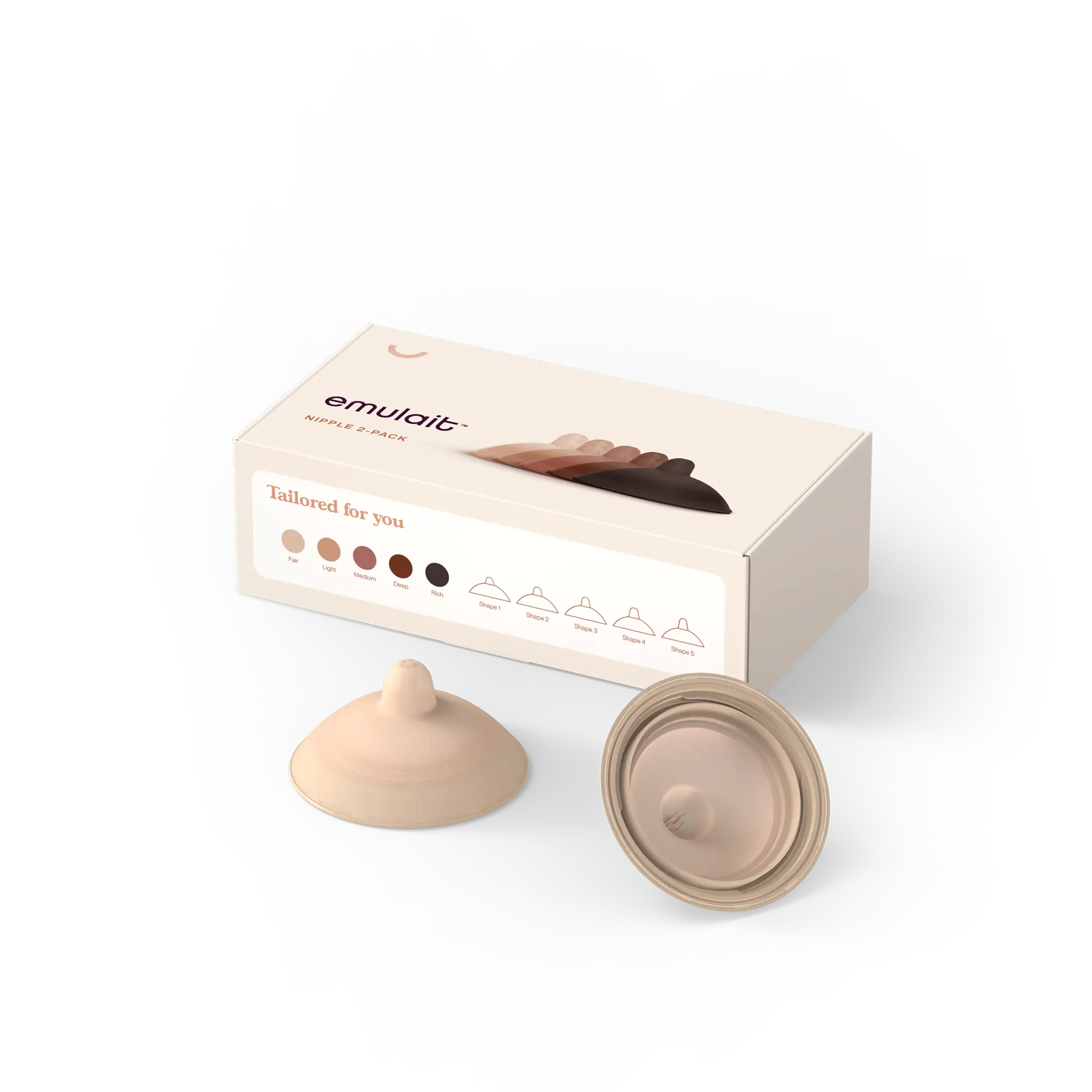 You can purchase our Nipple 2-pack if you wish to order a different color or size. To customize your nipple choice, download the Emulait app and use the scan feature to identify your preferred shape and color. The scan feature is only available on iPhone with True Depth camera.
